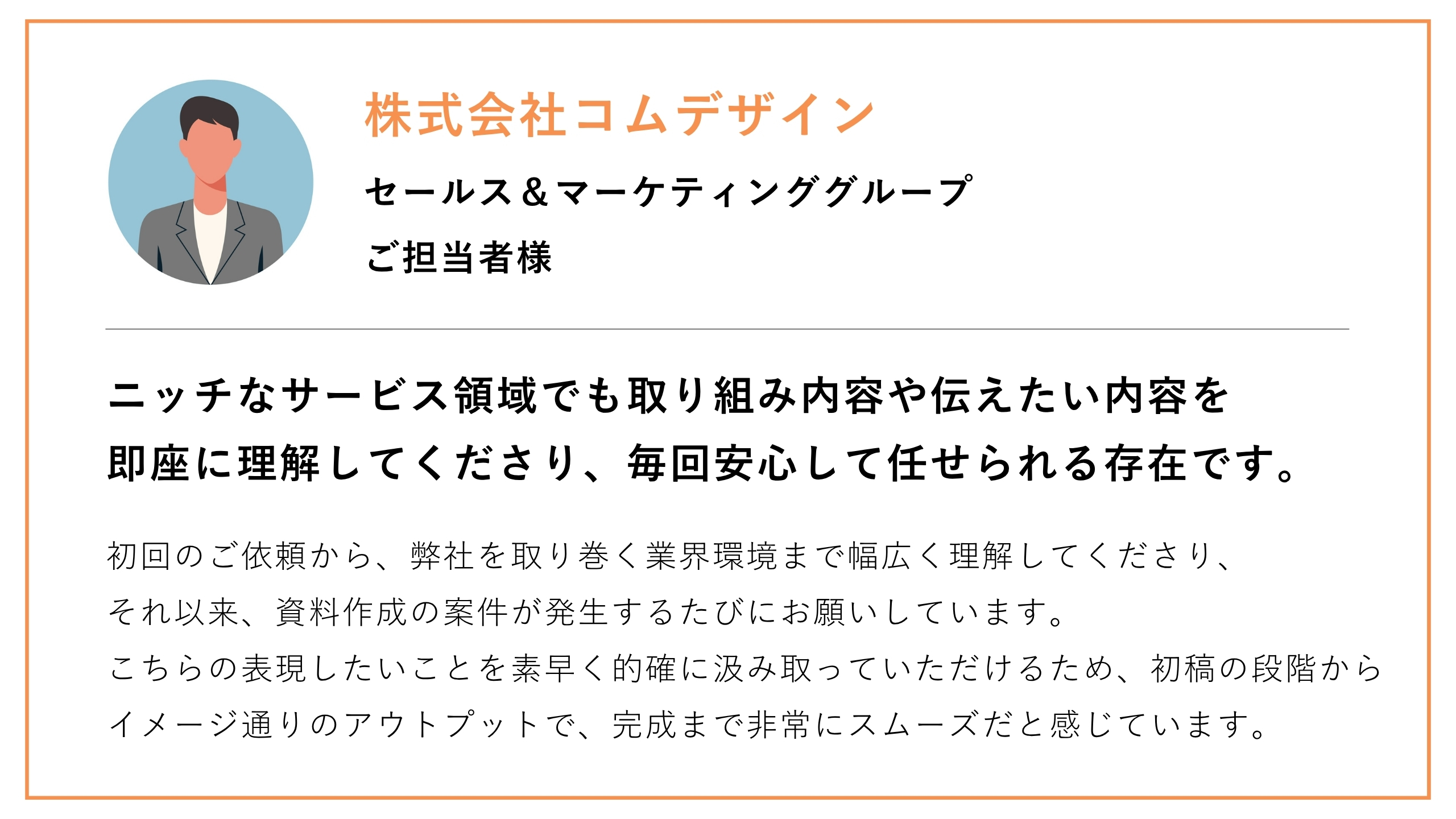 【株式会社コムデザイン】意図を的確に汲み取っていただけたため、完成までの進行が非常にスムーズでした