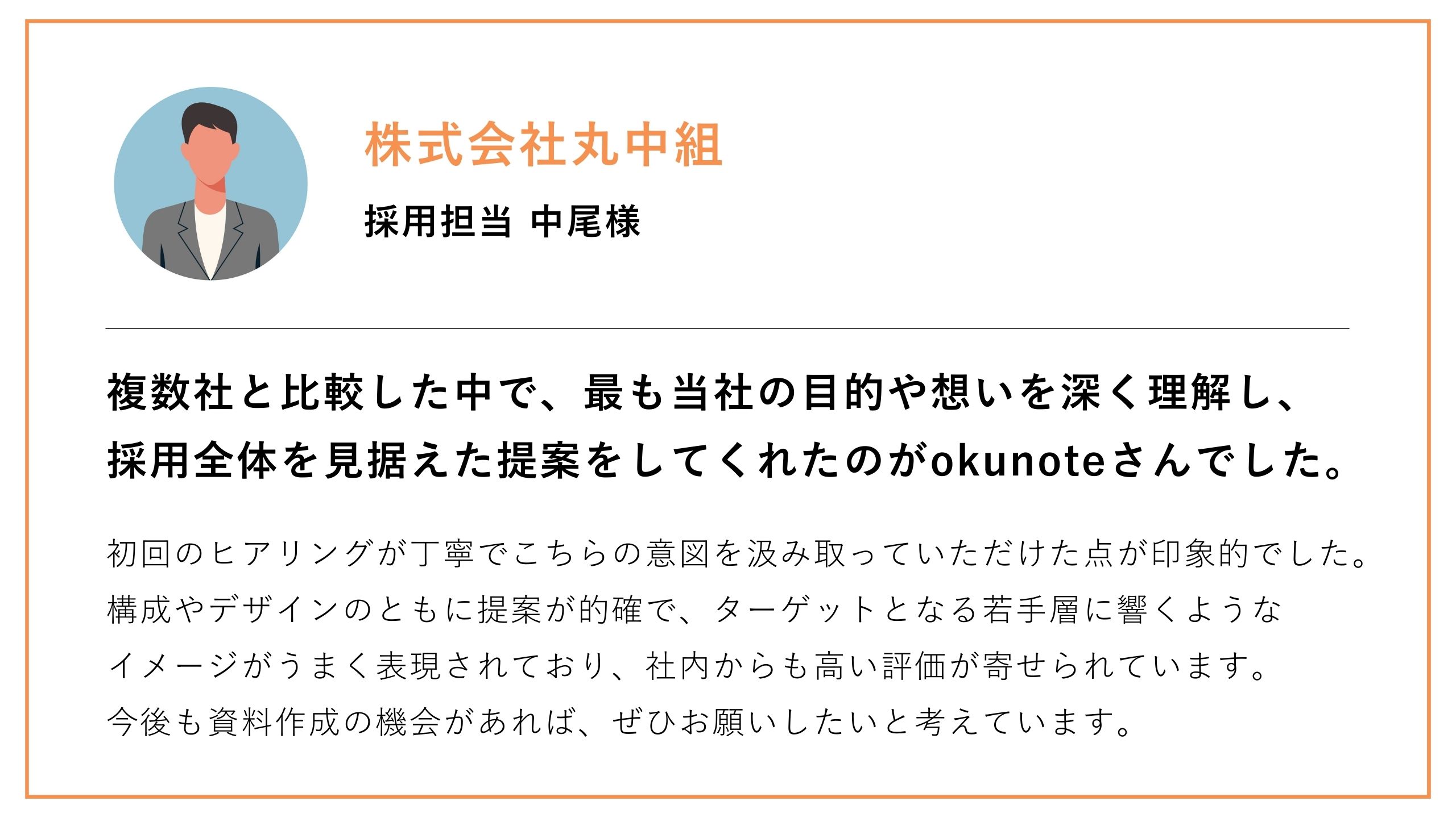【株式会社丸中組】採用活動全体を見据えたご提案をいただき、安心してお任せできると感じました