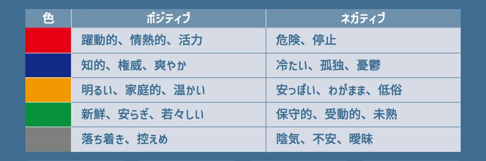 色ごとに与える印象が異なるので、選定に迷った際には、参考にしてみるのもおすすめです。