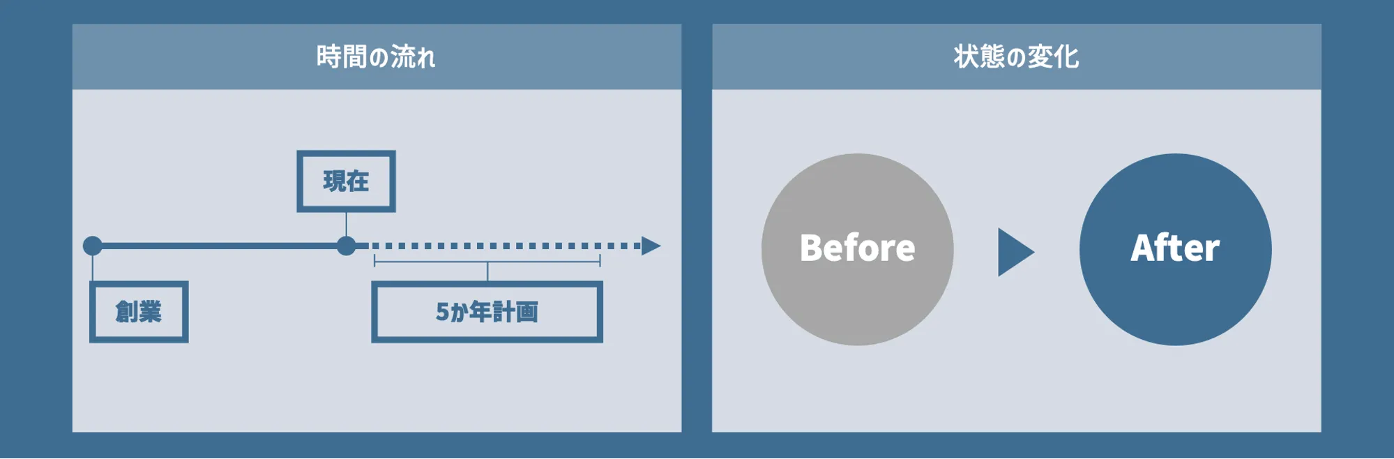 視線の流れは左から右なので、時系列のある内容は「過去を左、現在を右」に配置します。