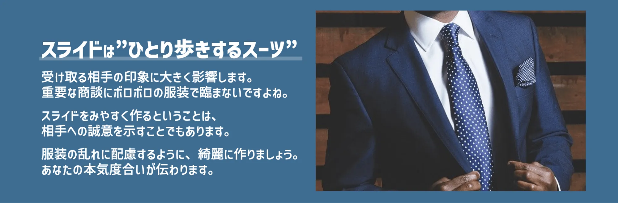 ビジネスにおける提案書やプレゼン資料の場合は特に、