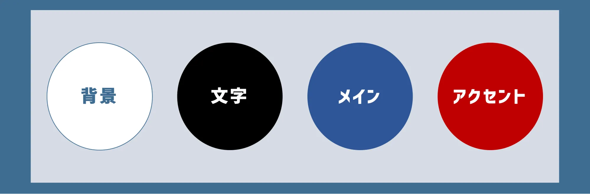 使う色は、「背景・文字・メイン・アクセント」でそれぞれ1色ずつ、