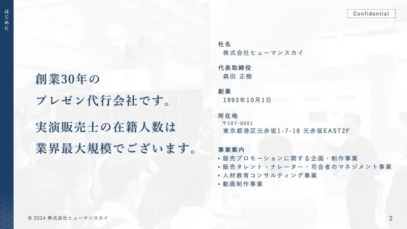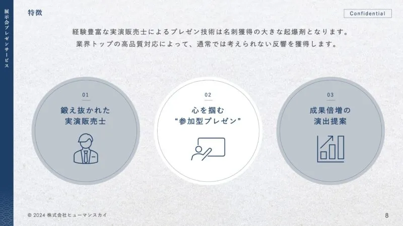 見かけだおしではなく、実際の商談を想定した丁寧な構成提案で洗練された資料に。
